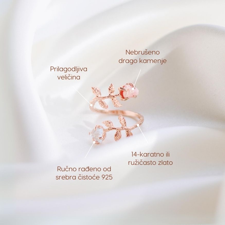 Poludrago neobrađeno kamenje koristimo kako bismo preneli poruku prirodne lepote i autentičnosti. U svetu gde su filteri i fileri postali norma, želimo da podsetimo žene da je prirodna i nebrušena lepota najlepša.