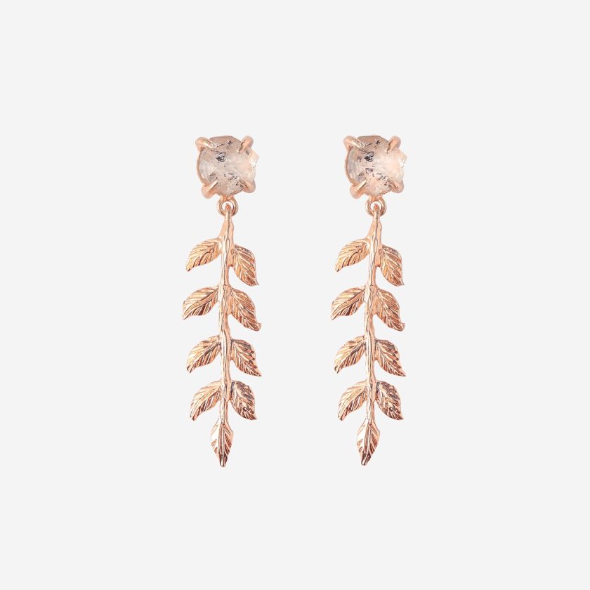 Ove prekrasne naušnice obložene ružičastim zlatom mogu se pohvaliti jedinstvenim oblikom sirovog herkimer dijamanta - poludragog kamena s velikim značenjem.